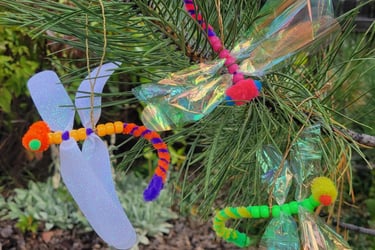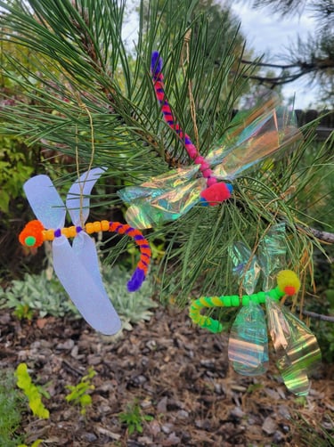 Make one of these shiny-winged dragonflies to hang on your tree! Appropriate for ages 8 and up.
